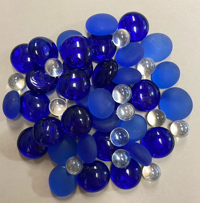 Color: Mixture of Cobalt Transparents, Blue Frosted, and Small Clear Marbles.